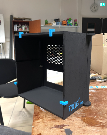 Pour des raisons de sécurité et d’esthétique, nous avons conçu un boîtier en bois découpé au laser. Ce boîtier :